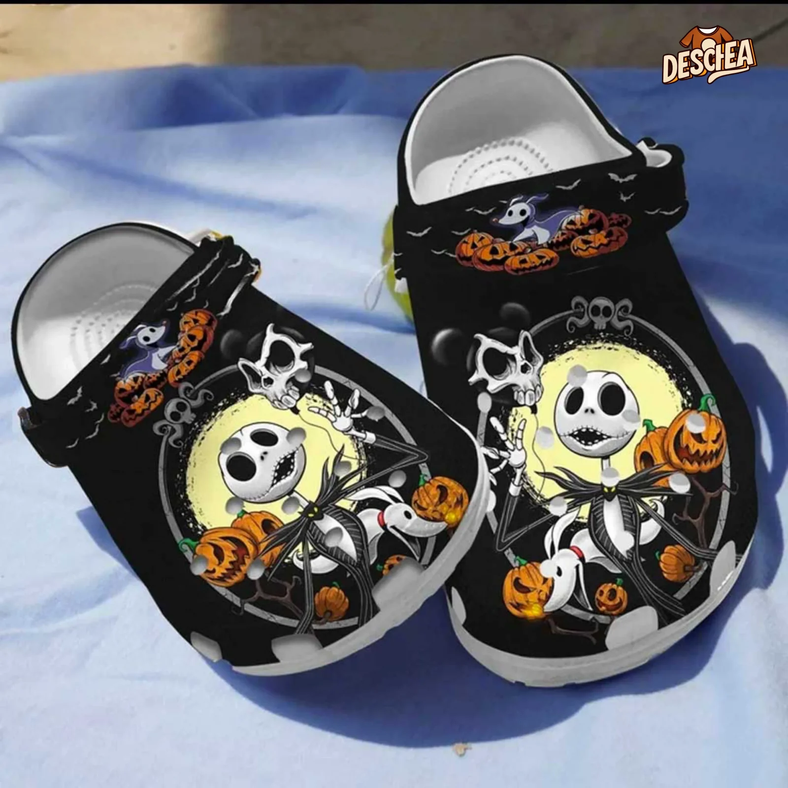 Jack Skellington And Zero With Mickey Skull Balloon Halloween Crocs, Scary Pumpkin Black Bat